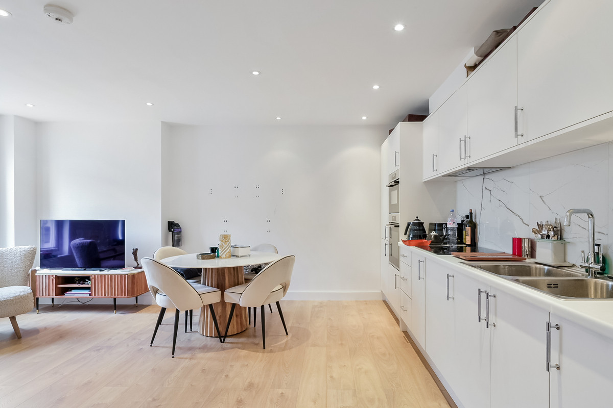 This wonderful flat occupies the fourth floor of this modern and newly refurbished building. Upon entering the apartment you are met with a fantastic feeling of light and space. There is a spacious open plan kitchen reception room, the perfect space for everyday living and entertaining. There is a double bedroom, well equipped bathroom and air conditioning throughout the apartment. The building also benefits from direct lift access.
