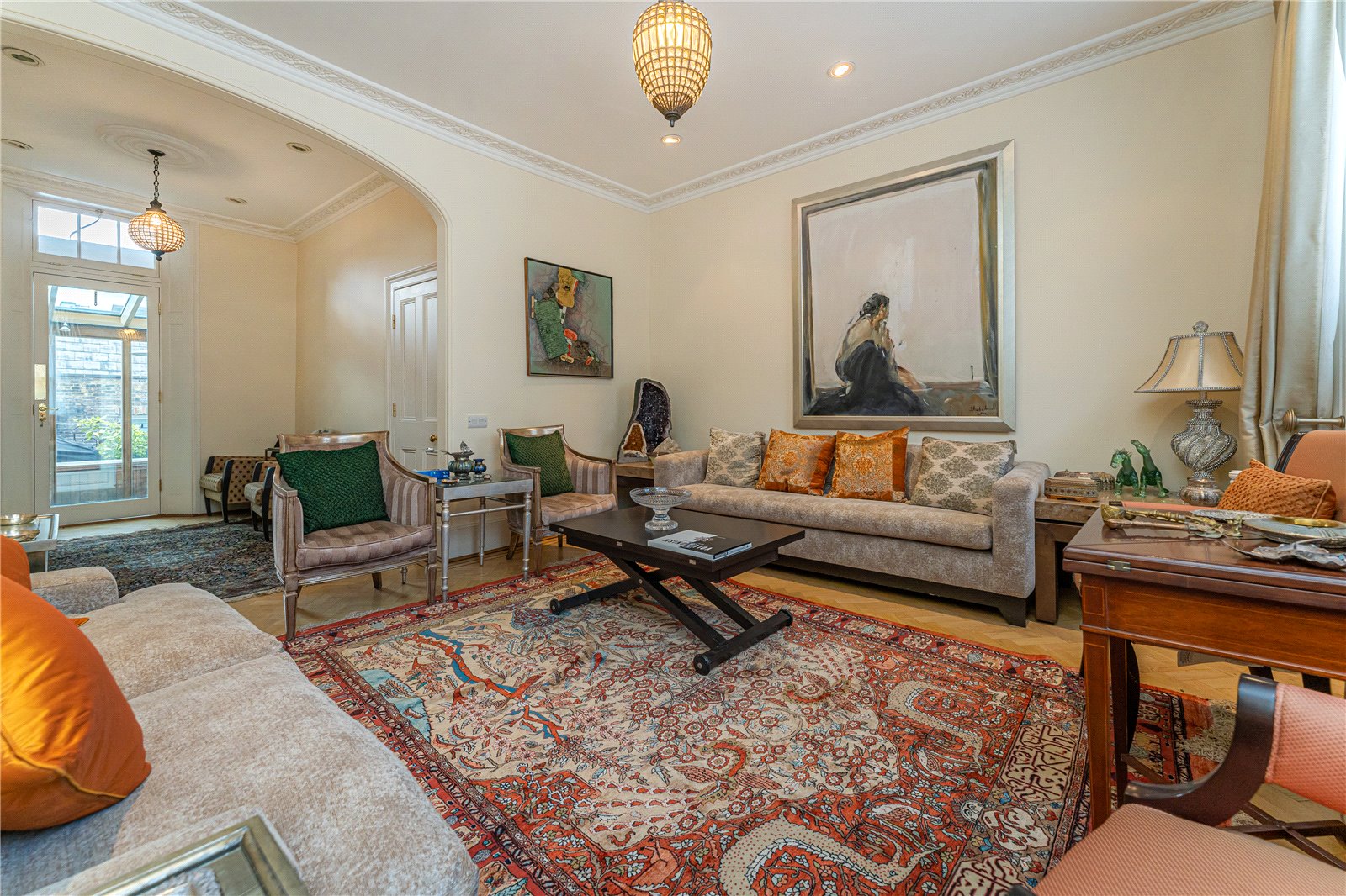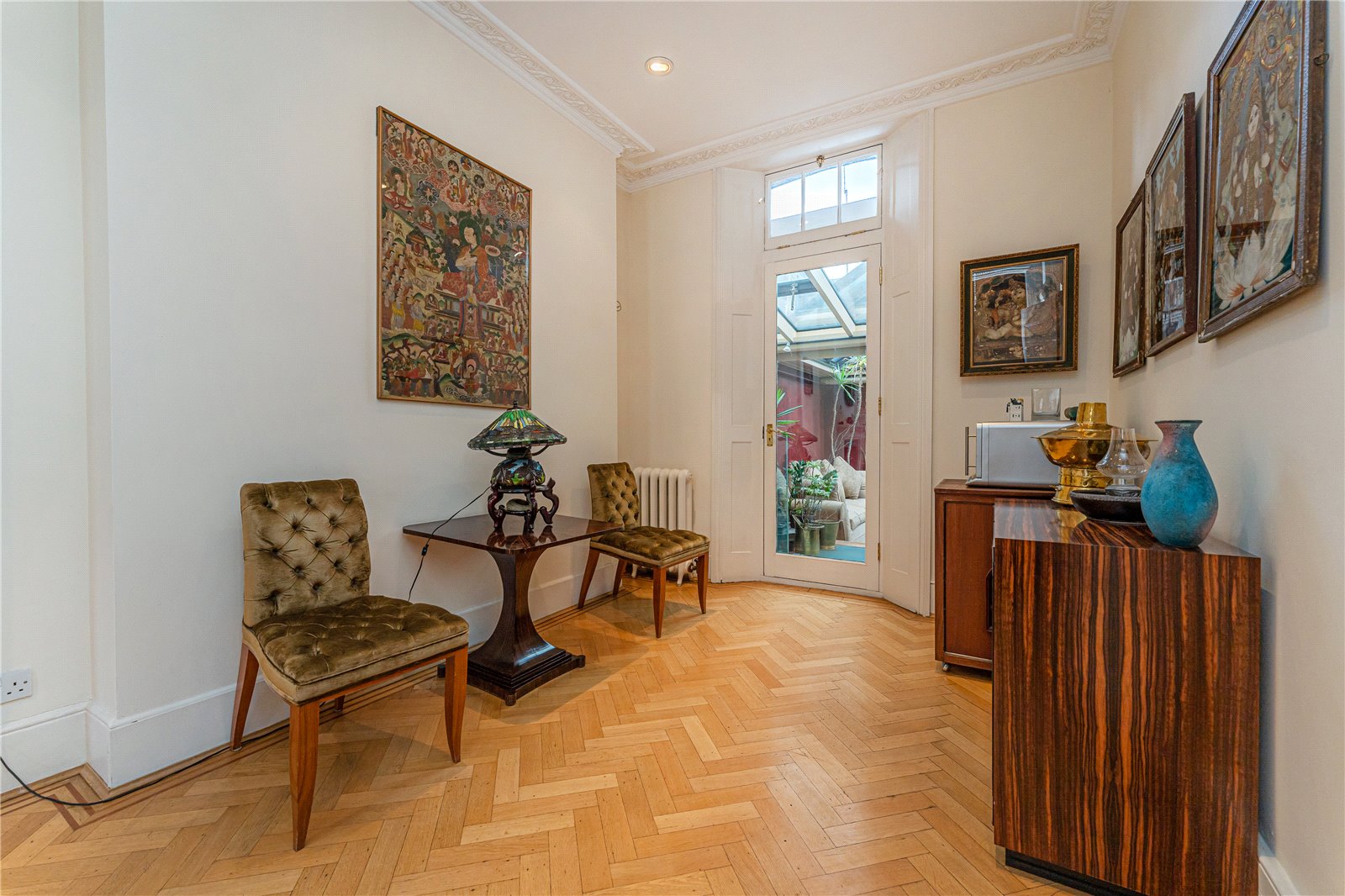This exceptionally rare double house is laterally connected with clever architect designed extensions, offering flexible accommodation to suit a large family or multi-generational living. Set over 6,080 square feet, the property offers up to 11 bedrooms, 6 reception rooms, 8 bathrooms and 3 private outside spaces.