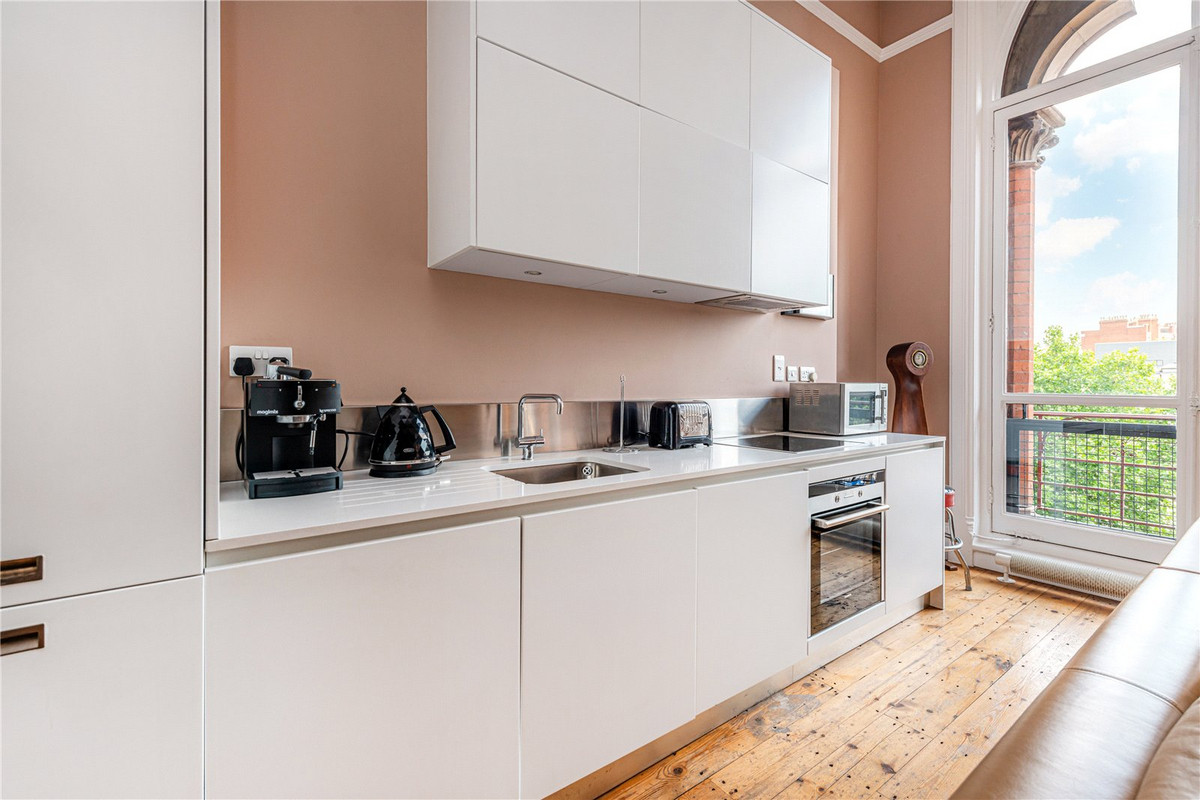 This spacious lateral apartment is on the second floor and boasts an abundance of natural light, offering 4m ceiling heights as well as iconic gothic style windows with far reaching southerly views.