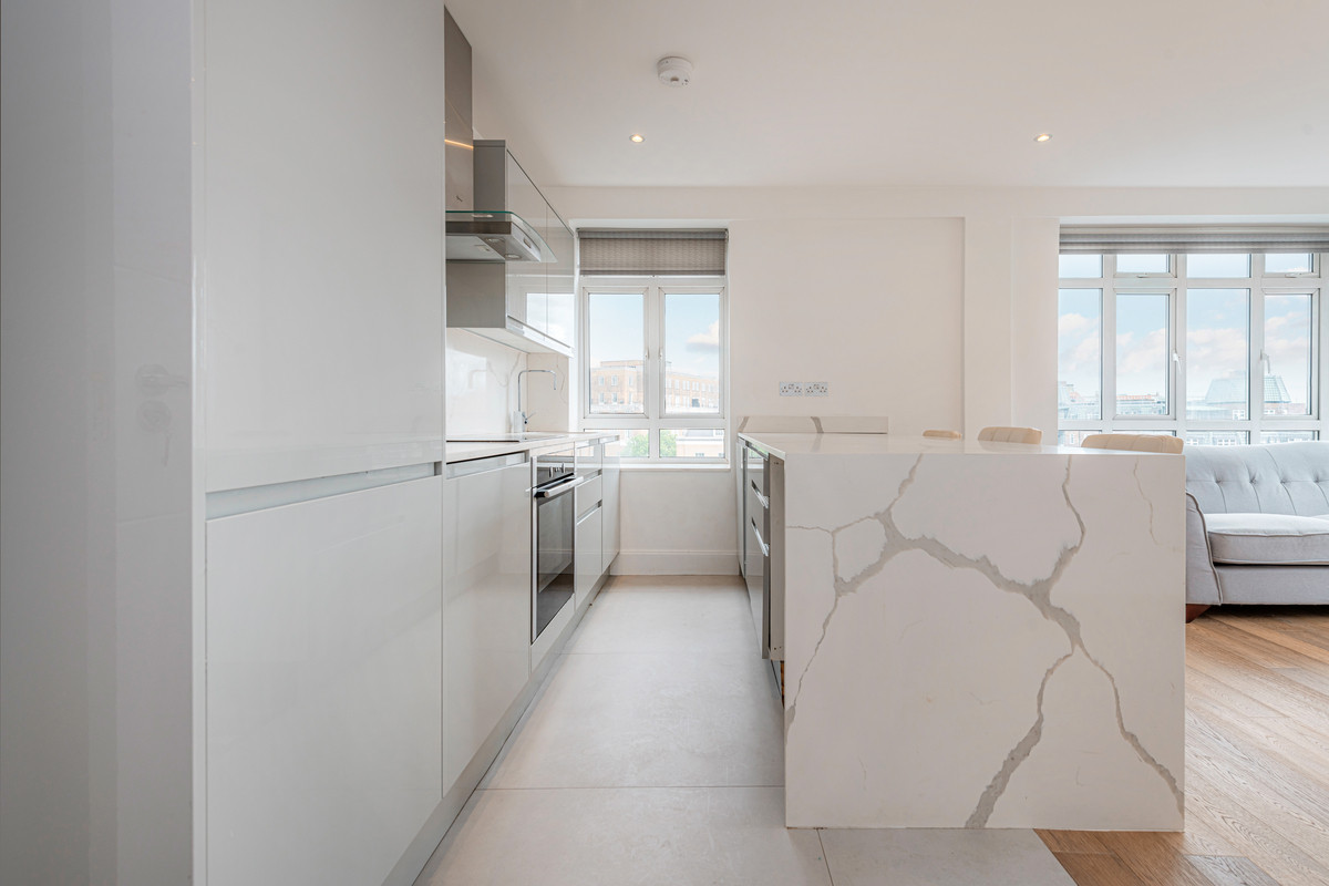 This bright dual aspect top floor apartment comes to the market in a stunning refurbished condition. Located in one of the areas most sought after buildings, it boasts a spacious open plan kitchen / living room area. Two large double bedrooms with built in storage along with two modern bathrooms.