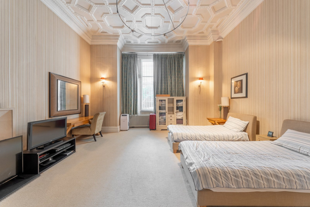 This exceptional apartment boasts 4-meter ceilings throughout, creating an expansive and airy atmosphere. The interiors seamlessly blend modern sophistication with period charm, offering a unique living experience. The spacious layout includes a grand double reception room, four generously sized double bedrooms, and elegantly designed bathrooms.